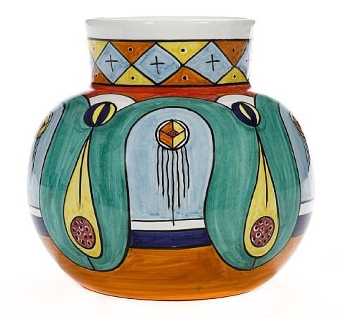 Painted and glazed ceramic piece Tomorrow's Flowers by artist John A. Okulick (American, born 1947) height: 8 1/4 inches diameter: 8 1/2 inches